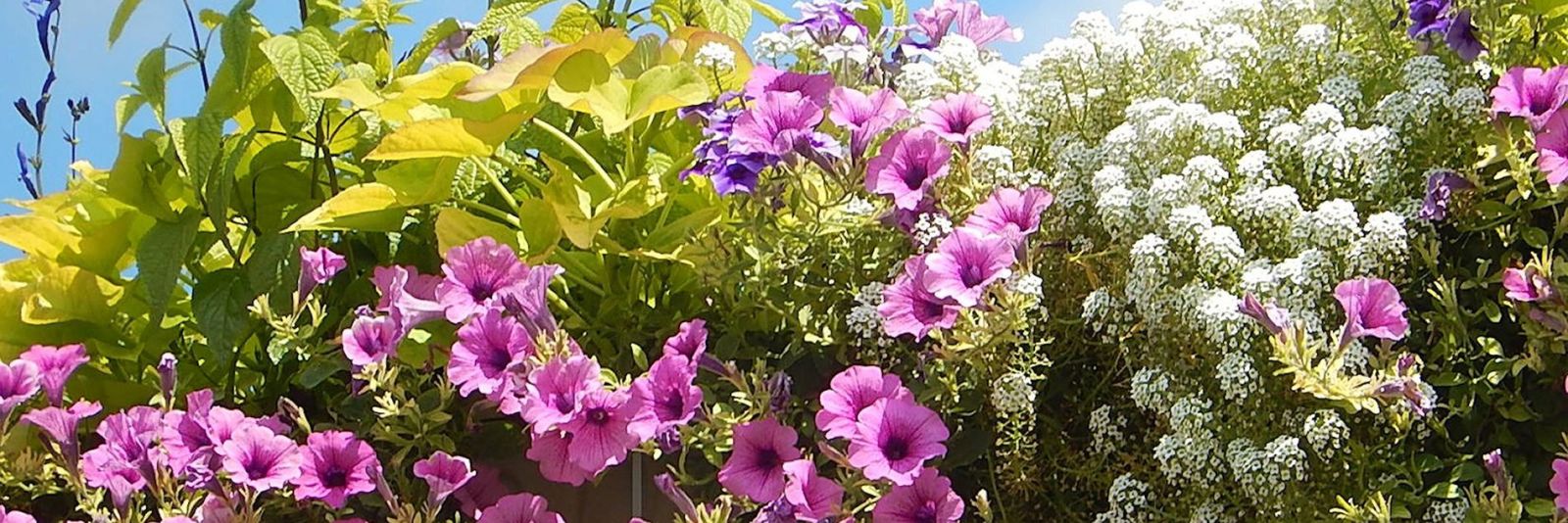 Bei uns finden Sie herrliche Sommerblüher in bester Gärtnerqualität. Fantasievolle Zusammenstellungen in kontrastreichen Farben bringen unbeschwerten Sommer-Spaß in Ihren Garten. Schöpfen Sie bei der Farbauswahl aus dem Vollen, denn erlaubt ist was gefällt! Lassen Sie sich von bunten Versuchungen locken. Gerne stellen wir Ihnen Arrangements für Balkon und Terrasse zusammen.